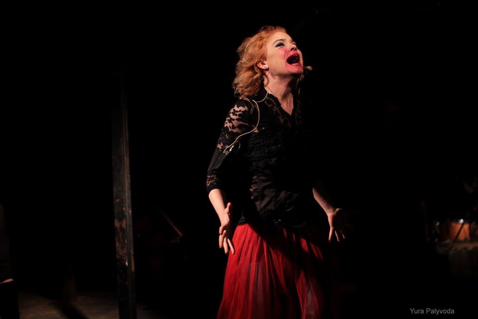 В такую Гертруду, как в магическое зеркало, всматривается юная Офелия (актриса Киевского Молодого театра Анастасия Блажчук). Режиссер сталкивает их в малогабаритном подвале - лоб в лоб, лицом к лицу. Он заставляет Офелию копировать Гертруду во внешних манерах и в королевском наряде (в рогатом парике). В старшей (Гертруде) живет упоение властью, а в младшей (Офелии) - безудержное стремление к ней. В такой Офелии - замурованная нежность, дремлющее внутри безумие.