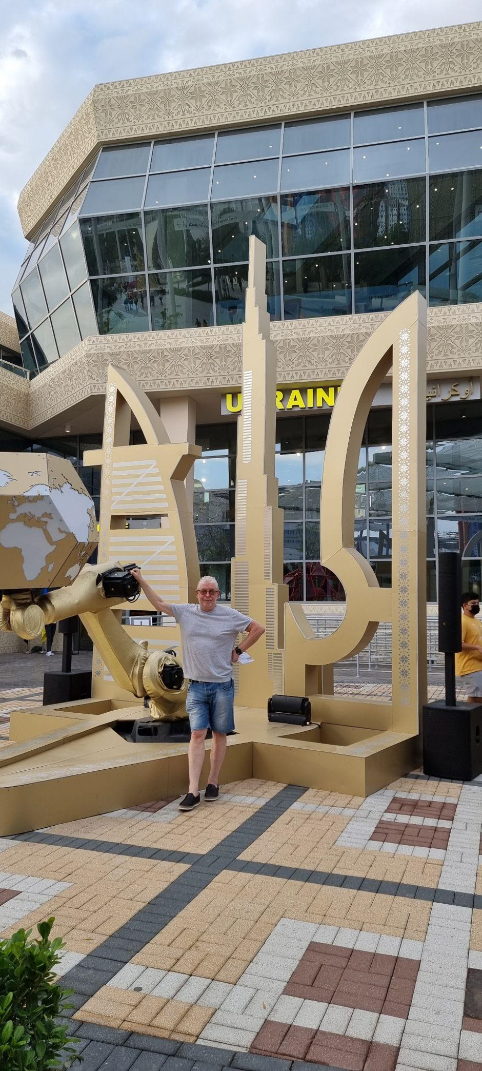 Украина, по сравнению с 1998 годом, показала очень неплохой павильон. Тема выставки нашего павильона: «Обʼєднуючи Розуми, Створюємо Майбутнє». Основная цель нашей выставки — «підвищення рівня комфорту і якості життя в містах за рахунок «оцифровування» процесів та раціонального використання ресурсів». Могу сказать, что показанное с большой натяжкой соответствует заявленной теме. Украина показала небольшой панорамный фильм, хуже по технике, чем в других павильонах, и это странно, потому что сегодня у нас много профессиональных студий, которые смогли бы сделать лучший фильм. Доказательством служит то, что в этом году именно украинская компания Magic Innovations создала праздничное LED-шоу для Дубая на самом высоком небоскребе мира Бурдж Халифа. Такое впечатление, что в своем отечестве пророков нет, а шейхи ценят нас больше. Выставили наши украинские крутые вездеходы «Шерп», электрические гоночные мотоциклы, ветряк от ДТЭК (но маленький). Во многих павильонах есть свои кафе и даже рестораны, где подают национальную еду — знакомят гостей выставки с национальной кухней и традициями. Мне хватило суши в павильоне Японии, а в украинском я выпил чарочку горилки с перцем за 20 долларов (в конце концов, нужно помогать отбивать инвестиции в выставку).