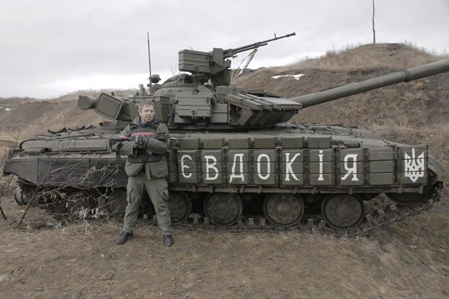 На тот момент уже четыре месяца подряд она каждый день выходила на дорогу, на свой блокпост, и с девяти утра провожала на фронт наших бойцов, несмотря ни на дождь, снег или мороз: она верила, что, пока будет стоять на своем блокпосту, - бойцы будут жить. Был такой случай: когда она узнала, что ее именем назвали танк, попросила показать ту воинскую часть. Ко встрече с танкистами наплела сине-желтых "фенечек" и подарила всем ребятам. Одного из них звали Богданом, и в тот же день Богдана ранили в бою. Евдокия безумно переживала, дескать, ее подарок его не спас, на что я ей говорил обратное: "Глупенькая, наоборот - твоя "фенечка" сохранила ему жизнь!". После четырехчасового обстрела Богдана все же вытащили, он в больнице. Теперь мы хотим снять встречу Евдокии с Богданом. Удивительно, что и родители у нее такие же. Им и дом хотели сжечь - швырнули в окна горящие шины, и животных потравили. Теперь Евдокия учится в Киеве, отца ее призвали - он в "учебке" под Полтавой, а мать до сих пор дома.
