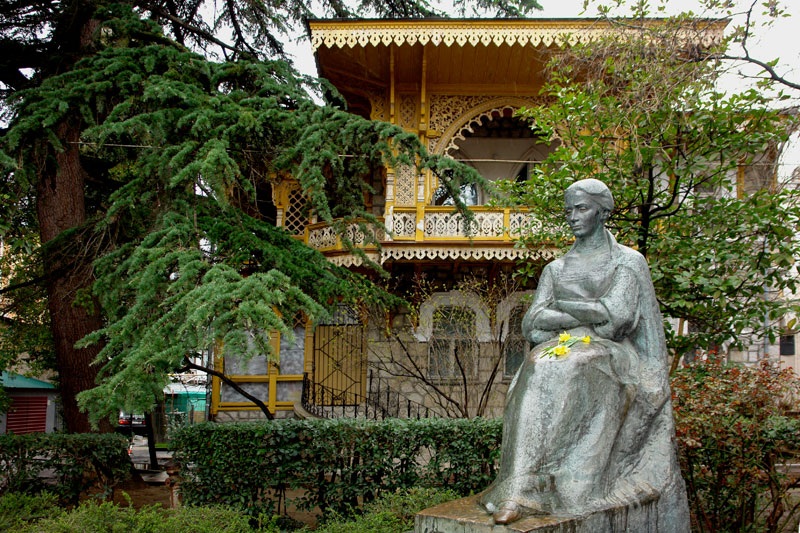 Ялта. Улица Екатерининская, 8. Здание в мавританском стиле с желтыми балконами. Здесь, на втором этаже, находится музей Леси Украинки. Ялтинский музей - один из четырех в Украине, увековечивающий гениального автора "Лісової пісні". Как известно, в Крыму поэтесса прожила три года, из них два - в Ялте. Здесь рождены ее прекрасные произведения: "Кассандра", "Над морем", "Кримські спогади". Еще в 1993 г. под влиянием украинской общественности прежняя экспозиция "Леся Украинка и Крым" обрела иной статус - "Музей Лесі Українки". На базе этого музея проходит традиционный ялтинский фестиваль "Лесина осінь", конкурс "Кримська плеяда". Союз театральных деятелей Украины уже традиционно проводит здесь конкурс молодых украинских актеров на лучшее чтение произведений Леси. Как сообщили ZN.UA в НСТДУ, в ближайшем будущем (с учетом нынешней ситуации на полуострове) подобный конкурс вряд ли возможен в Ялте. Скорее всего, он переместится в Луцк или Новоград-Волынский, места, также связанные с жизнью и творчеством Леси.