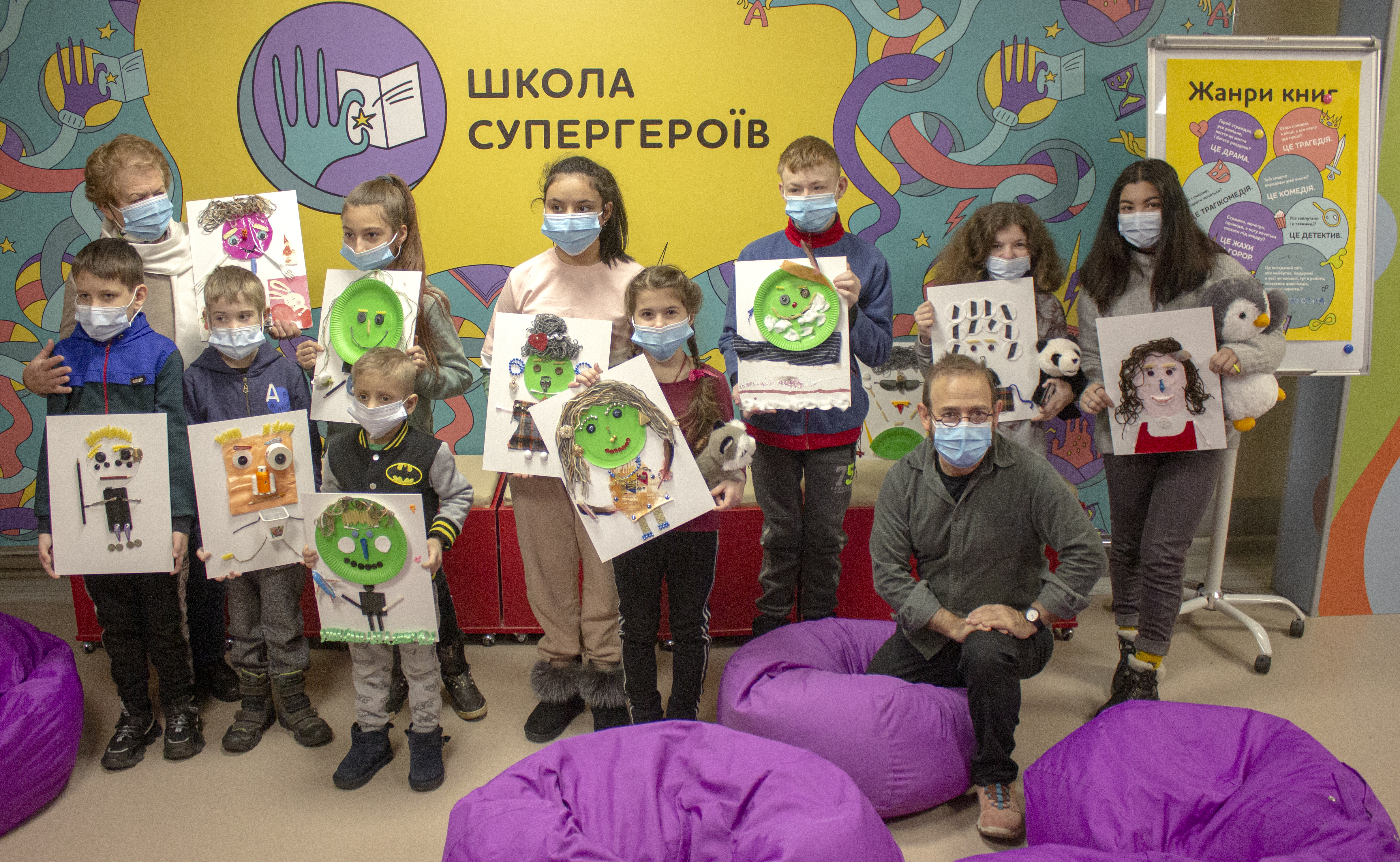 В Киев его пригласило Посольство Израиля вместе с общественной организацией Small Heart with Art в рамках общего проекта «Искусство здоровья». SHWA — это благотворительный арт-проект, который изменяет будни детей в больницах. Еще в 2014-м Small Heart with Art открыл первые классы для ВИЧ-положительных детей в «Охматдете». Потом Школы Супергероев заработали для детей в больницах Киева, Житомира, Херсона, Днепра и Хмельницкого. Сейчас совместно с Посольством Израиля они воплощают проект по распространению арт-терапии в украинских больницах.