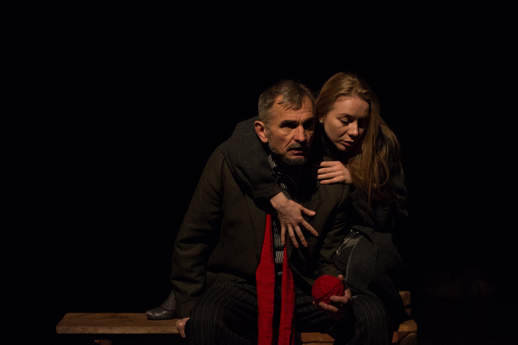 Важно, что в актерском четырехугольнике важные пазлы не стремятся в солисты и не уходят в сторону сольных бенефисов. В частности, Олег Стефан, сыгравший в "Стежках", на мой вкус, одну из лучших своих ролей, существует как-то благостно и воздушно в едином актерском ансамбле. Этот Стальский внешне никак не демонизирован актером-искусником, но за ним все равно угадывается несчастный человек, закрытый и опасный субъект, растративший жизнь не на тех, не на ту, съедаемый изнутри одиночеством или жаждой разбить свое одиночество вдребезги - как витраж. При определенном освещении и искусном мизансценировании проглядывает в Стальском (Стефане) лукавый Мефистофель. Потом вдруг (если фантазия поработает) обнаружится сходство этого героя с острыми силуэтами скульптур мастера Пинзеля - такими же загадочными мужчинами из далекого и давно разбитого мира.