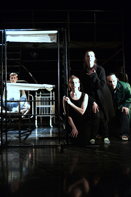 Сценическое время и сценическое пространство, видимо, слишком загадочные метафизические материи для авторов спектакля, поскольку обходятся они с ними так, как им хочется. Будто бы в спектакле не должно быть ни ритма, ничего подобного, а постановка могла бы длиться и два часа без антракта, и двадцать два часа тоже без антракта.