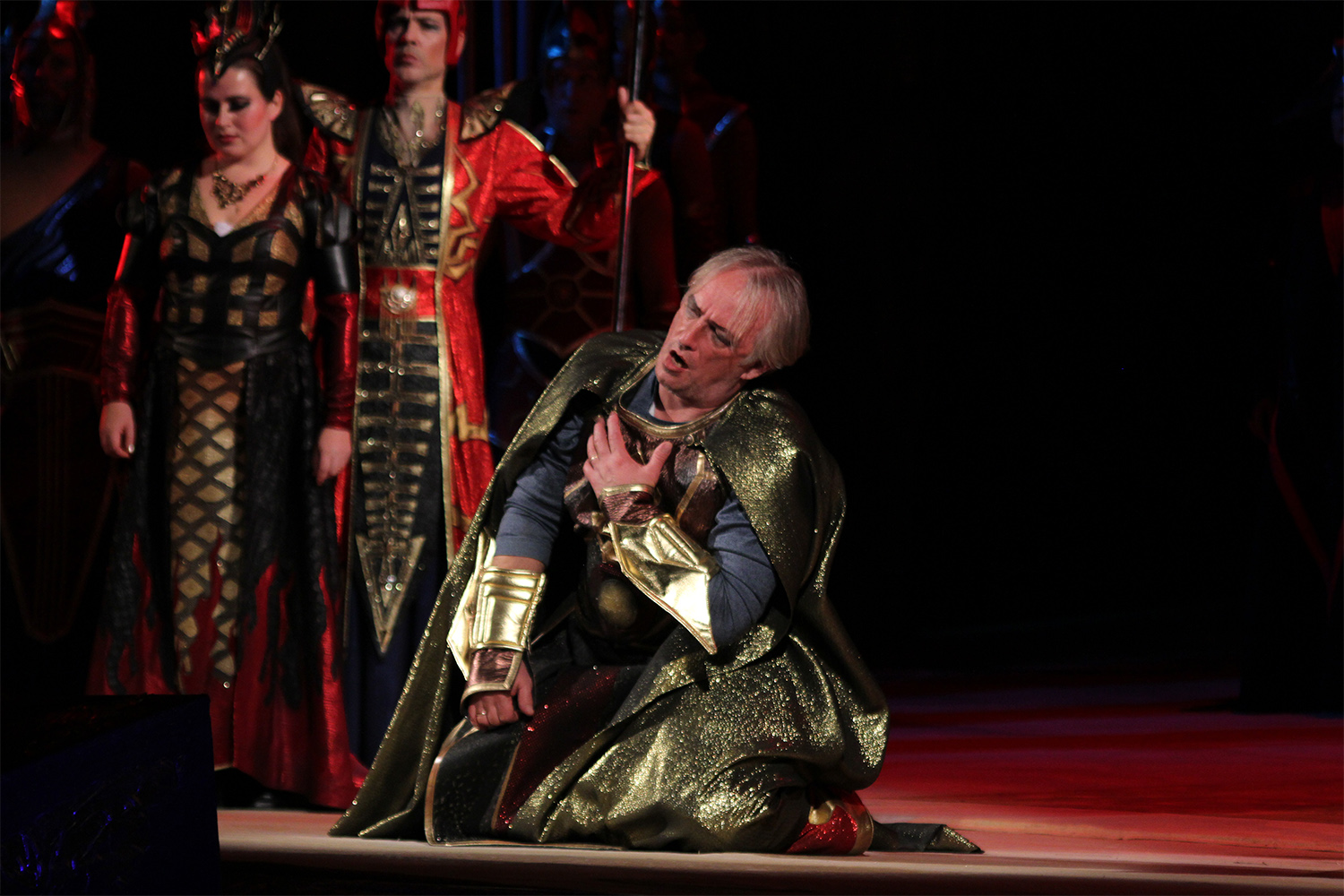 Говоря об оперной труппе, важно подчеркнуть: имея в афише "Любовный напиток" Доницетти в постановке Оксаны Тараненко (с героями в джинсах, мотоциклом на сцене и фонтаном из пластиковых бутылок), можно было бы "оторваться" в вердиевском "Набукко" с условно-историческими костюмами, фронтальными мизансценами и отказом от балетной суеты. Оперные солисты могут немножко "выдохнуть" и спокойно покрасоваться на сцене в сверкающих нарядах. Добротно, величественно, ярко, и с поучительным смыслом…