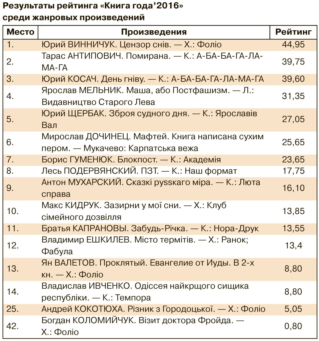 Если бы существовал спидометр для измерения скорости профессионального роста литераторов, то он бы сейчас указывал на отметку "Владислав Ивченко". За пять лет этот сумской журналист, развлекавшийся веселыми побасенками в кунсткамере недавней украинской мифологии, превратился в мастера "жанрового фристайла" (по определению А.Кокотюхи; Буквоїд, 25.05.2015). А после выхода двухтомного романа "2014" (К.: Темпора, 2015) Татьяна Трофименко даже осторожно вспомнила имя Ремарка (Літакцент, 18.11.2015).