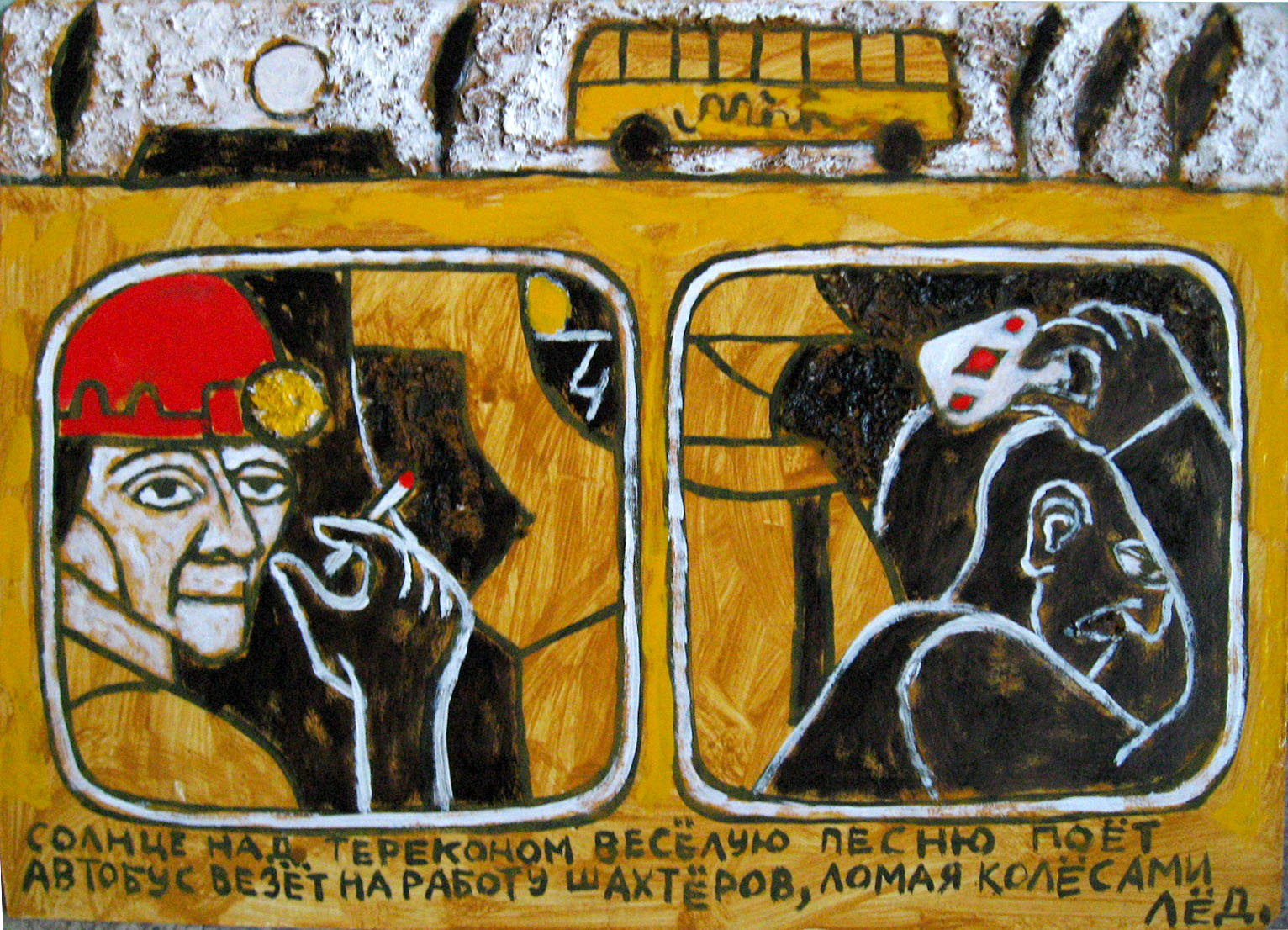 Я возил работы о шахтерах в Польшу (на выставку). Но опять неудача! Как только выезжаешь "за" Украину - это не работает, поскольку люди не могут прочитать твой текст, и получается, что не понимают специфики шахтерского фольклора.