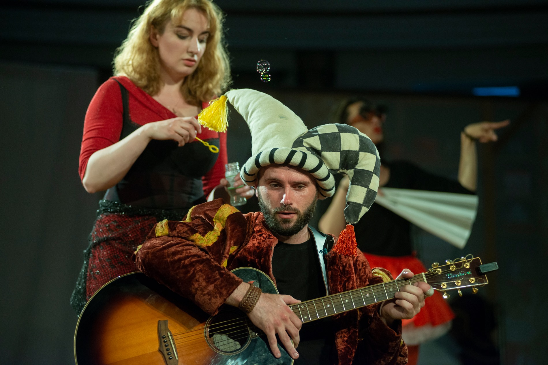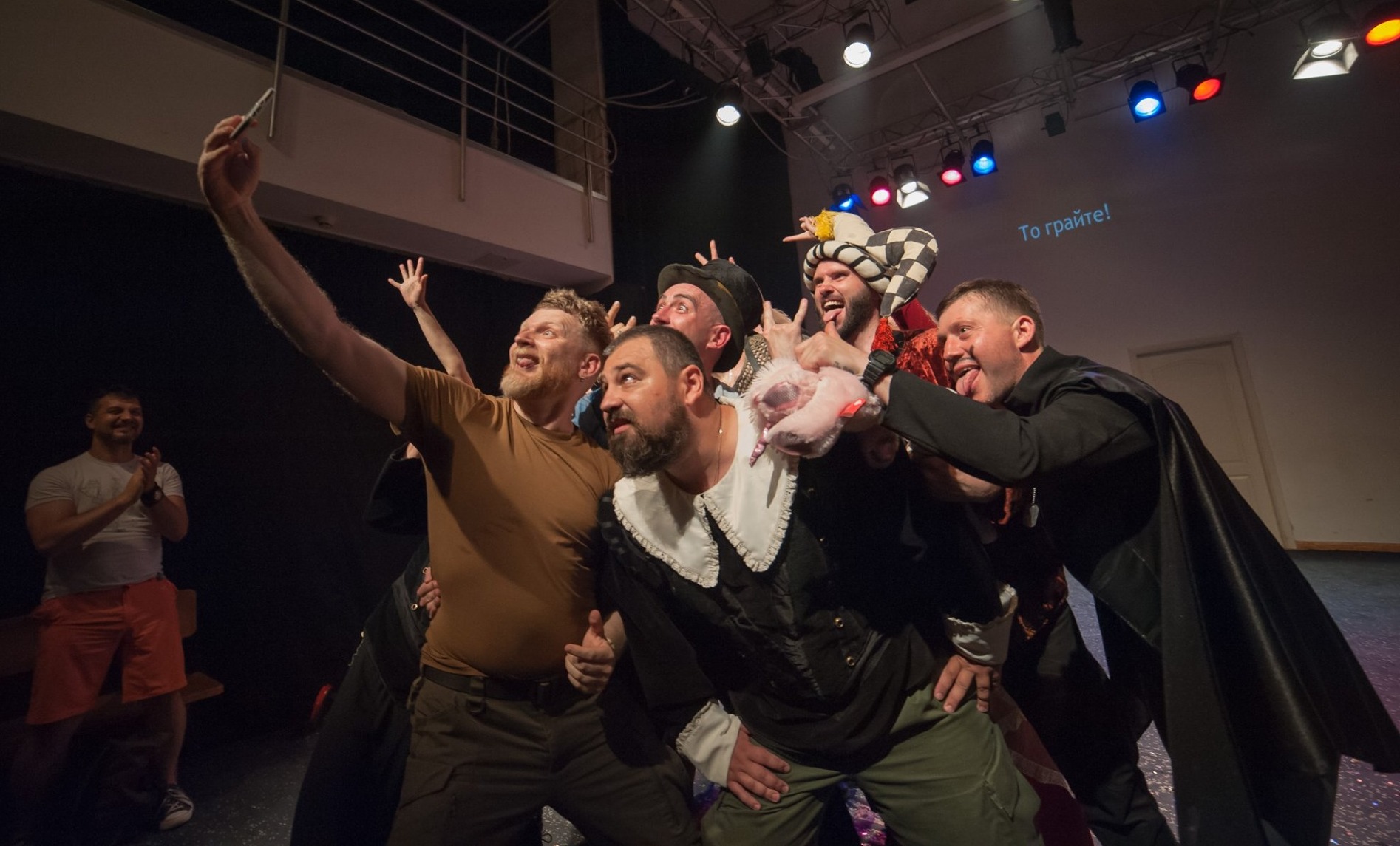 И именно здесь следует вспомнить главных действующих лиц проекта - начинающих актеров. Конечно, ни один из них - а это в обычной жизни участники боевых действий и волонтеры - не имеет профессионального художественного образования, их школа жизни значительно сложнее: они прошли испытание войной в зоне АТО, поэтому вместо обычных званий заслуженный/народный в программе спектакля указаны их позывные: Сергей Викарчук-Евпаторийский "Евпатория" (Орсино, герцог Иллирийский), Екатерина Головченко "Джейн" (Виола, молодая женщина из Мессалины, после кораблекрушения выброшенная на берег Иллирии, где появляется под именем Цезарио), Юлия Сосновская "Птица" (Оливия, графиня из Иллирии), Виктория Сомова-Каталичук "Сомик" и Лариса Микитен "Мик" (Мария, горничная Оливии)), Дмитрий Мирошниченко "Цунами" (сэр Тоби, дядя Оливии), Владимир Бойправ "Варвар" (сэр Эндрю, приятель сэра Тоби), Евгений Ярило "Ярило" (Мальволио, слуга-распорядитель в доме Оливии), Арсений Прилипка "Замок" (шут из дома Оливии), Евгений Мищенко "Смайл" (Фабиан, житель дома Оливии), Сергей Кутенков "Замполит" (Себастьян, брат-близнец Виолы), Иван Щипайло "Псих" (Антонио, друг Себастьяна), Евгений Слезенок "Париж" (капитан, друг Виолы) и Андрей Ильченко "Медведь" (Шекспир).