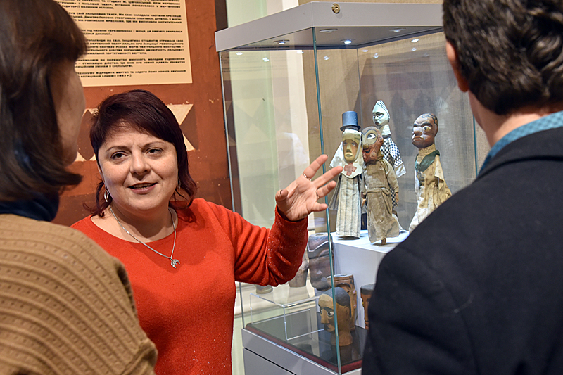 У межигорцев был даже свой "вертеп" - кукольный театр. В нынешней экспозиции представлены куклы, созданные их руками. Художник- педагог Евген Сагайдачный в мастерской вместе со студентами тоже лично вырезал деревянные головы для персонажей вертепа. Пьесы и сценарии писали сами, в этом особенно отличались Микола Цывчинский и Дмитро Головко. Особенно популярными в театральных постановках были сатирические скетчи: молодежь высмеивала религию, политику, мировой капитализм. Да, к слову. Не стоит думать, будто в бывшем монастыре они жили как отшельники. Хотя техникум был закрытым учебным заведением - туда часто приезжали туристы. Только за лето 1925 года Межигорье посетило 2,5 тыс. человек. И это - несмотря на сложность дороги: современных машин не было, добирались на телегах, а то и пешком!
