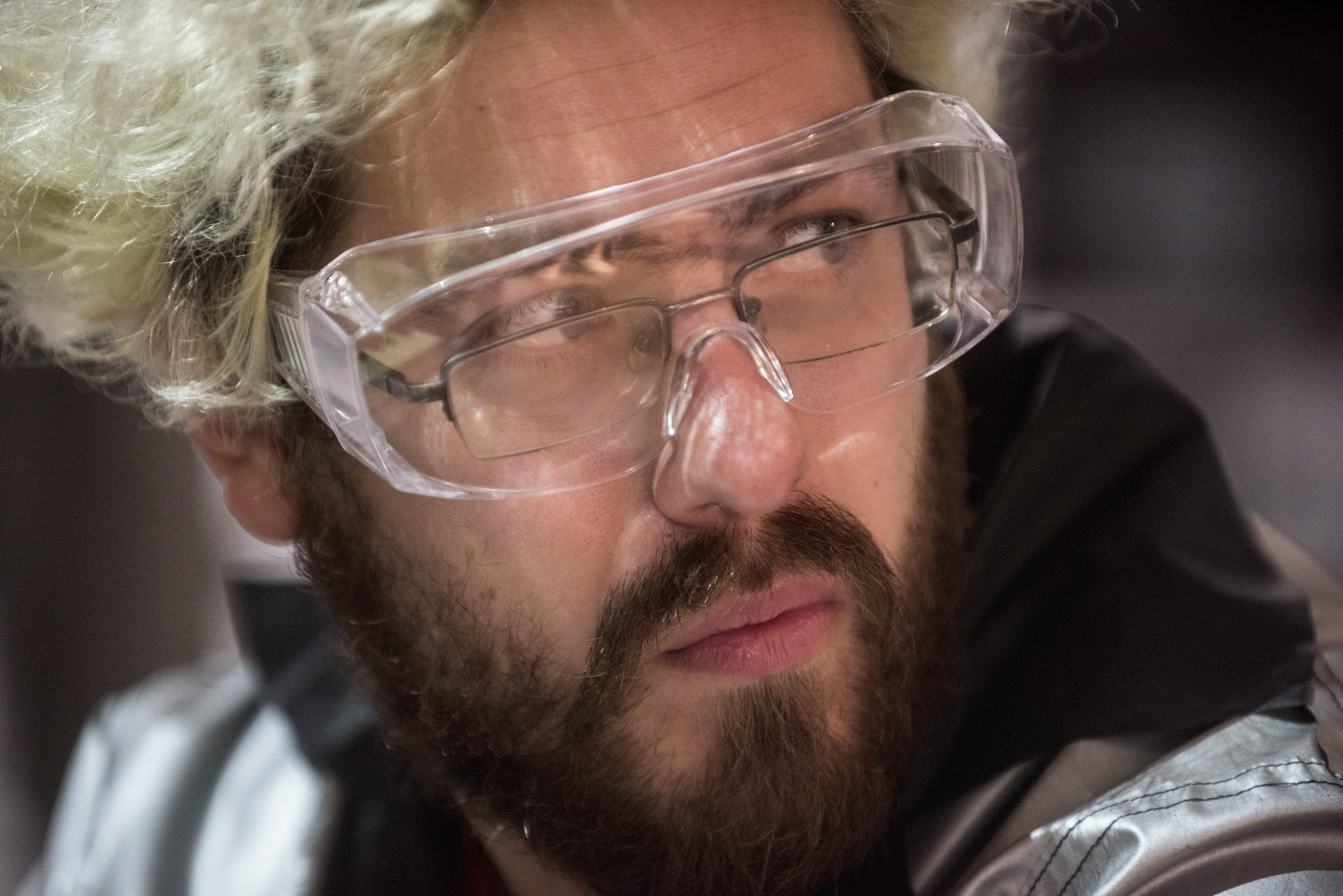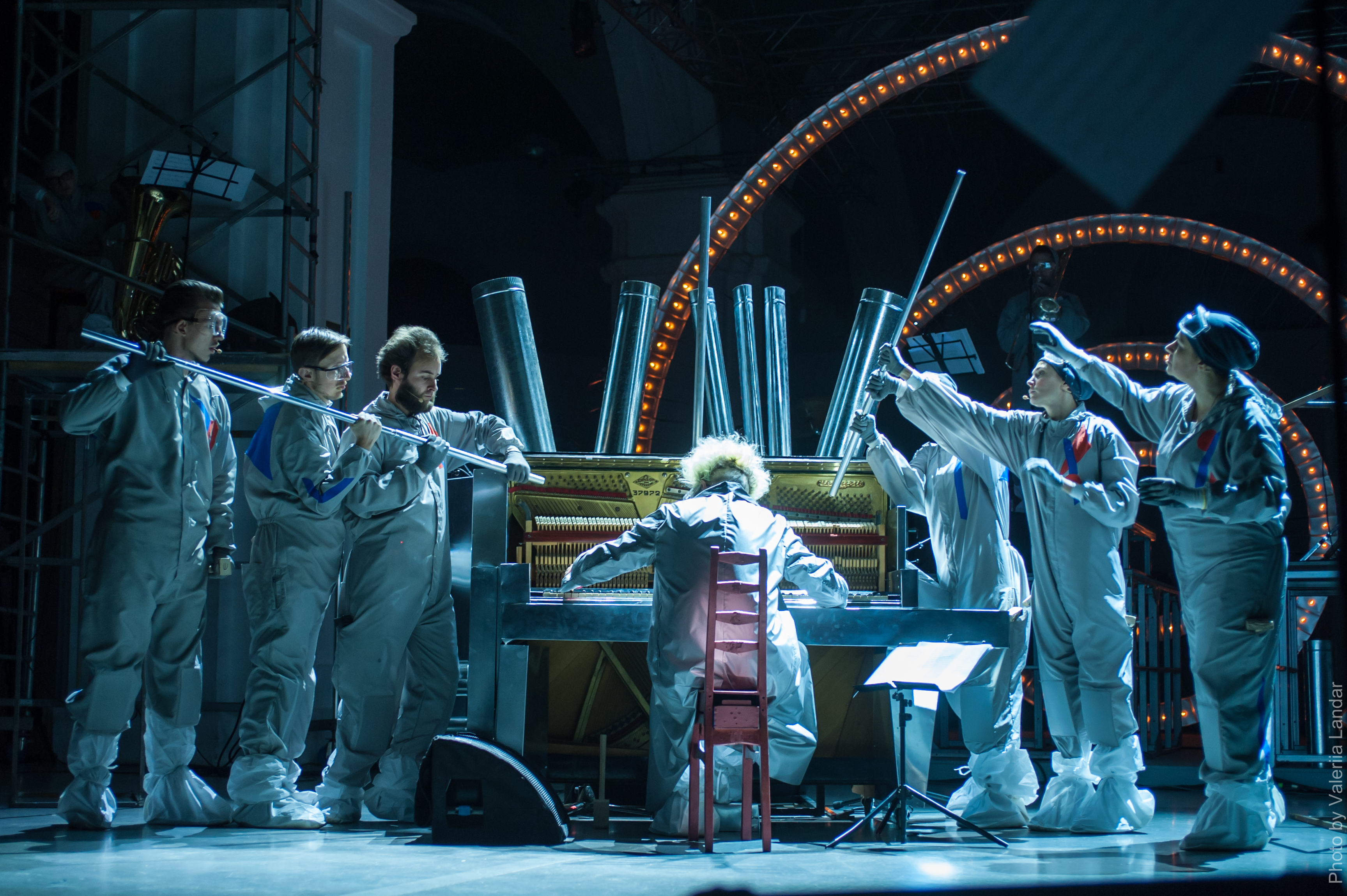 Именно Илья Разумейко в роли Инженера будет играть на этом агрегате. А вот Роман Григорив - не только дирижер с палочкой, он также играет роль Сына Миллиардера, то есть владельца завода, главного менеджера.