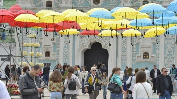 30 мая в Киеве отмечают День города. В рамках праздничных мероприятий на Крещатике прошел традиционный велопробег, а на Софиевской площади киевлян и гостей столицы порадовали красочной инсталляцией из "летающих зонтиков".