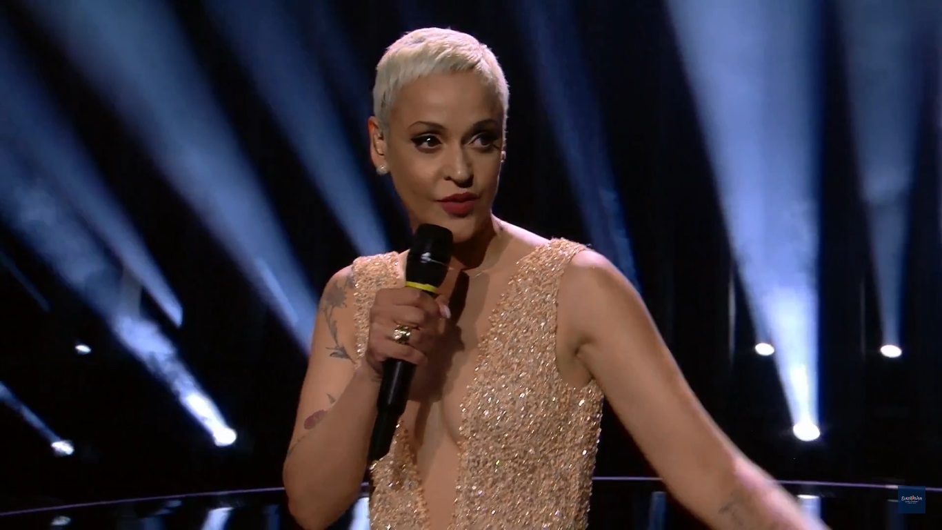22:04 Открывают шоу не ведущие "Евровидения", а португальская певица Ана Моура.