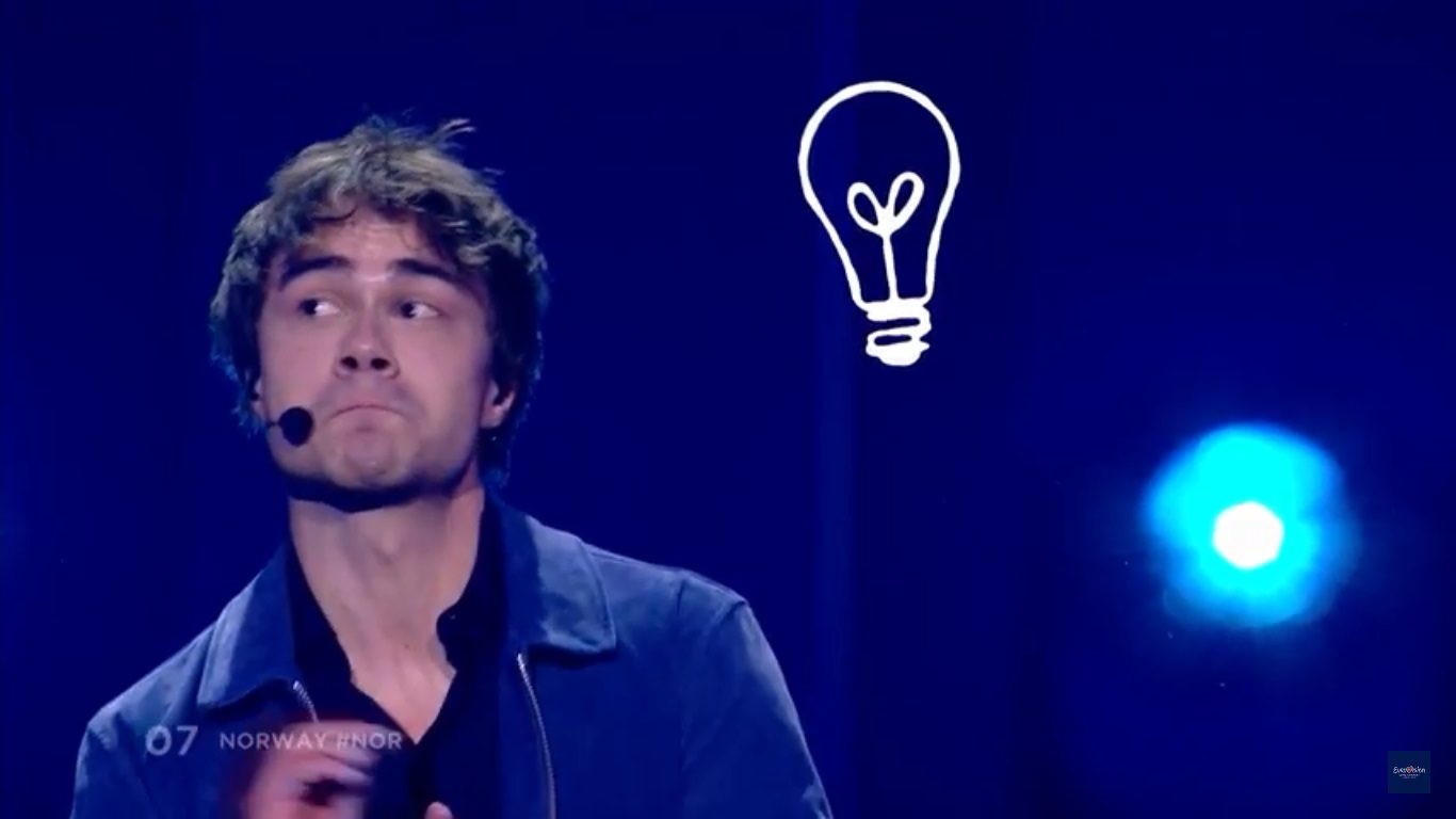 22:41 А вот и победитель "Евровидения 2009" Александр Рыбак из Норвегии. Песня исполнителя рассказывает, собственно, о том, как написать песню, и сопровождается визуальными эффектами. И, конечно же, Саша не мог не привезти с собой свою знаменитую скрипку.