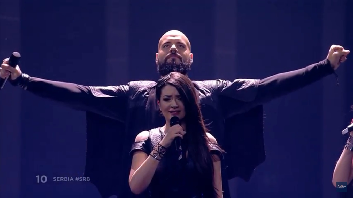 22:56 А вот и Саня Илич и "Балканика" из Сербии. Конкурсанты уверенно выбороли себе выход в финал с песней на родном языке, название которой можно перевести как "Наши дети".