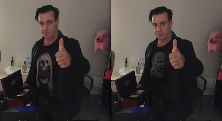 Фотографии, на которых солист группы Rammstein позирует в футболке с портретом Путина, а также его восторженные высказывания в адрес президента России оказались подделкой. Об этом сообщается на официальном сайте Rammstein.