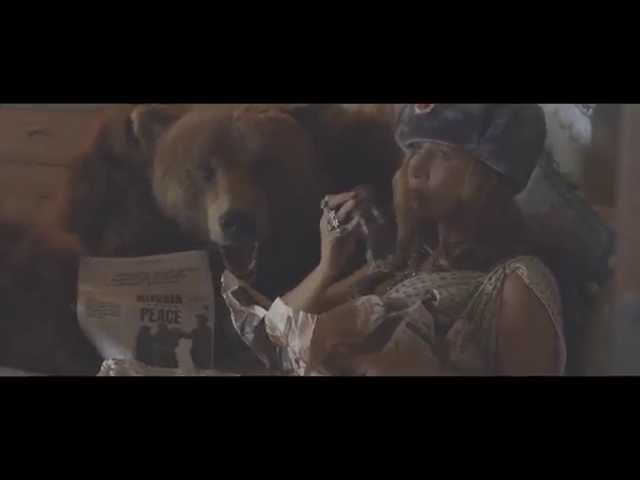 В ролике представлены практически все лубочные символы России: кокошники, шапки-ушанки, медведи, березы, самовары, водка, соленые огурцы, бублики.