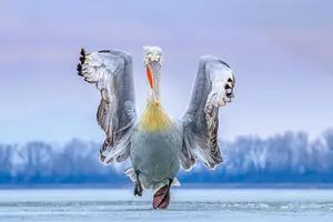 Зима, снег, и эти невероятно красивые птицы с характерными восковыми кончиками на крыльях и непослушными хохолками. Мне хотелось передать не просто статичный портрет, а динамику их жизни, неуловимое движение стаи. Ключевым здесь было решение использовать технику длинной выдержки (long exposure). Это дало возможность «заморозить» в центре композиции нескольких птиц, жадно поедающих ягоды калины, видневшиеся из-под снега, вместе с тем создав эффектные размытые шлейфы от крыльев других свиристелей, которые двигались на заднем плане. Кстати, от перебродивших ягод свиристели иногда пьянеют и могут даже отключиться. Чтобы быстрее справиться с таким состоянием и избежать обезвоживания, для них важно, чтобы рядом был источник воды, где птицы могут утолить жажду.