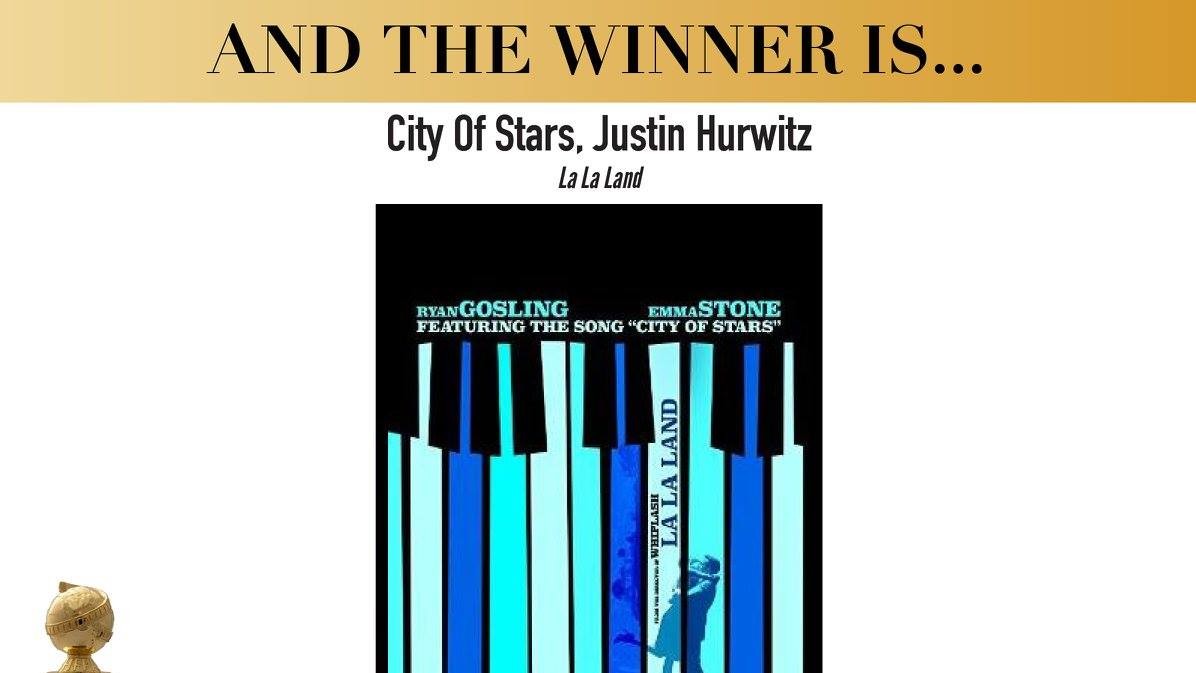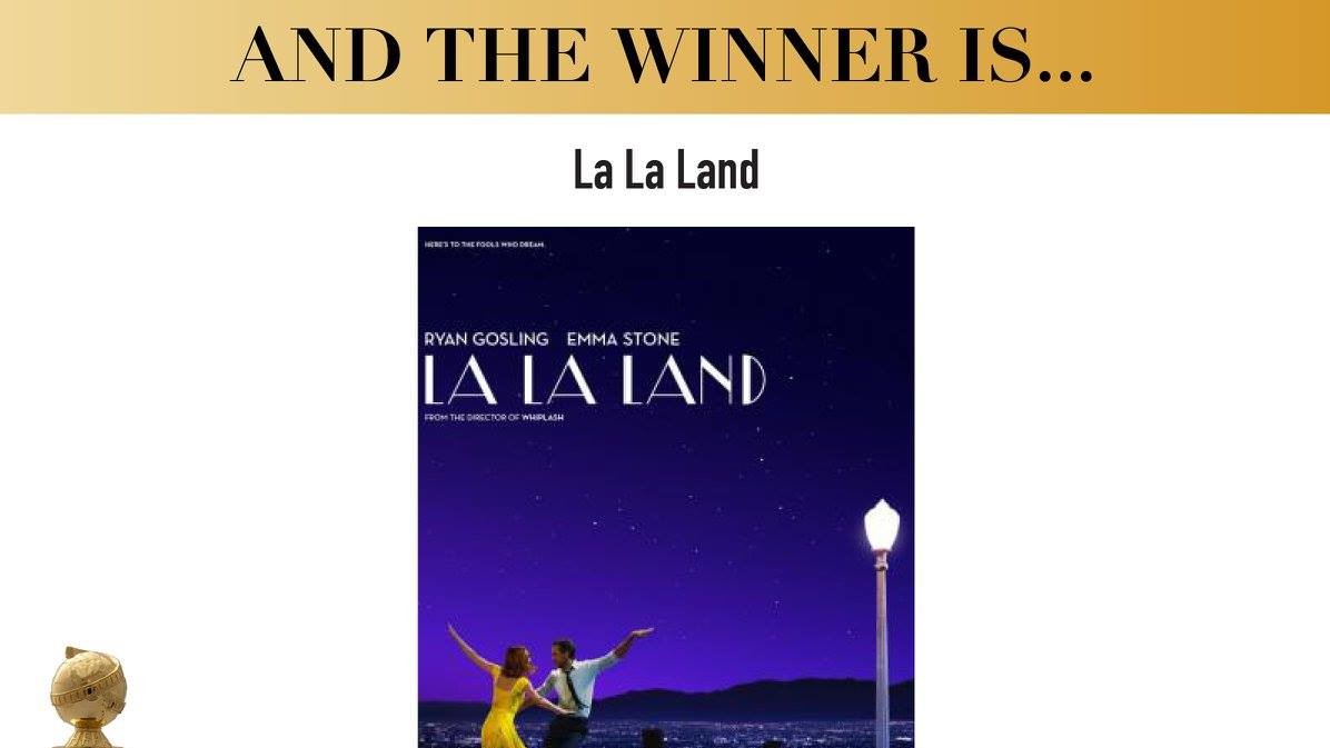 "Ла-Ла Ленд" был признан лучшим фильмом в категории комедия или мюзикл и получил награды за лучший сценарий (Дэмьен Шазелл), лучшую музыку (Джастин Гурвич) и лучшую песню ("City of Stars" Джастина Гурвича). Шазелл также получил премию как лучший режиссер, а исполнители главных ролей Эмма Стоун и Райан Гослинг - как лучшие актеры в комедии или мюзикле.