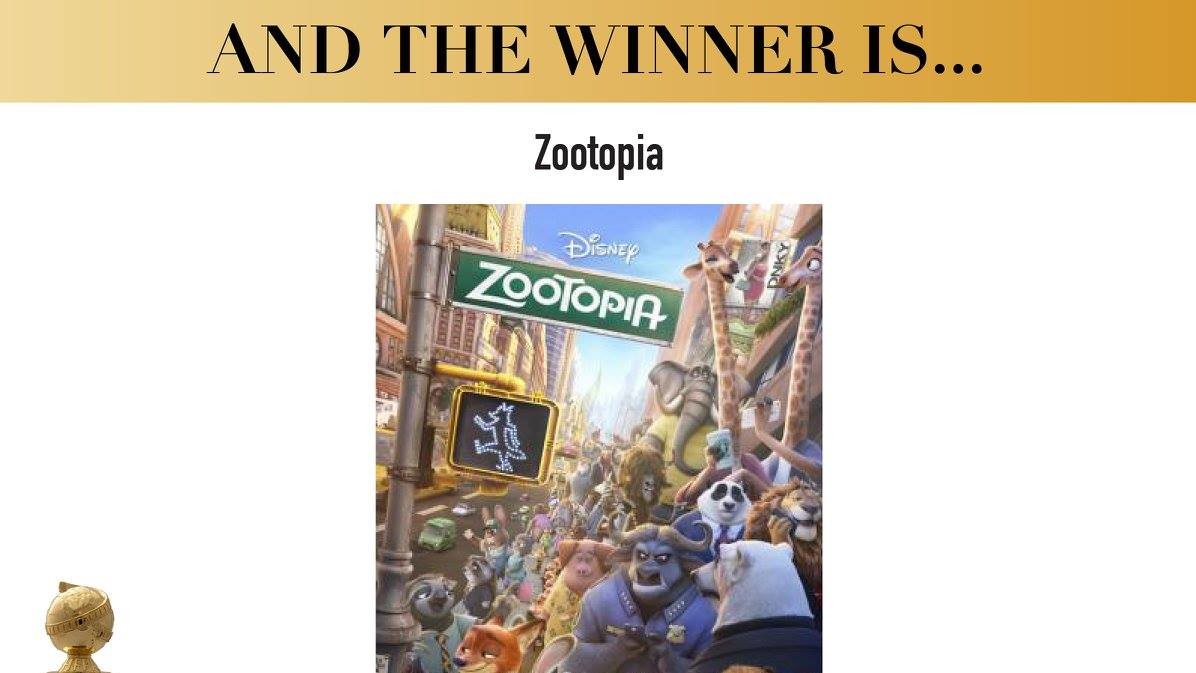 Лучшим анимационным фильмом признано творение Walt Disney "Зверополис".