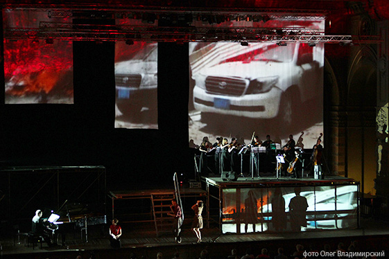 Участники (их много): танцоры и актеры "ДАХа", ансамбль "АртеХатта" (во главе с Мирославой Которович). И одинокий пианист, как камертон полифоничного перформанса.