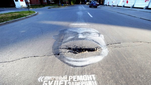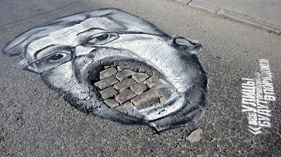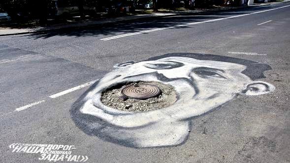 Следующей ночью на замазанных портретах появилась надпись: "Закрашивать - не чинить". После этого коммунальщики сдались и полноценно отремонтировали разрисованные дороги.