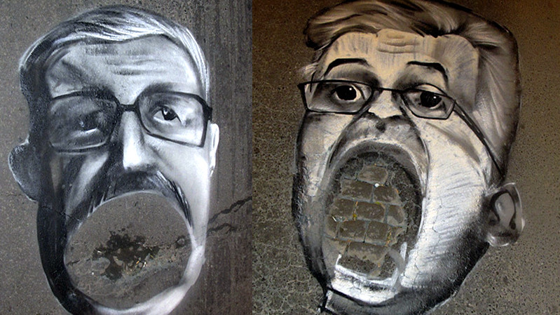 Однако только этим авторы проекта не ограничились. В то время когда СМИ Екатеринбурга наперебой сообщали о творении неизвестных уличных художников, скрытые камеры снимали, как коммунальщики в спешке закрашивали портреты и наспех закидывали ямы асфальтом.