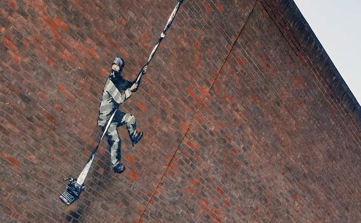 A sad morning as we learn that the #Banksy #mural on the side of #ReadingGaol