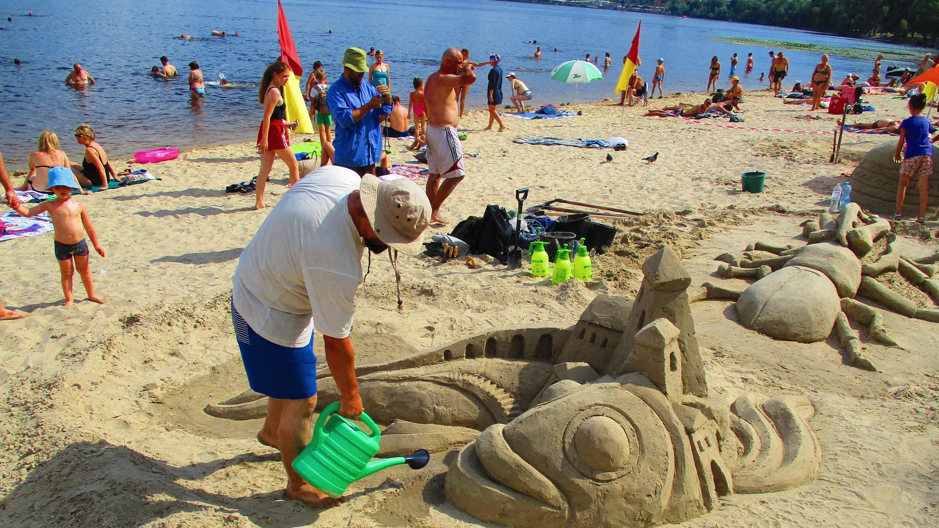 На пляже Наталка возле столичной Оболони состоялся конкурс пляжной скульптуры Sand Fest-2018, в ходе которого художники-любители создали разнообразные арт-объекты из песка. Вся территория пляжа стала похожа на песочный мультфильм.