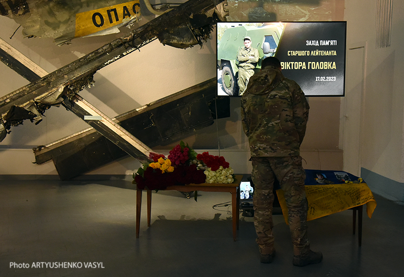 В Национальном музее истории Украины во Второй мировой войне в пространстве музейной выставки "Украина – распятие", рассказывающей о русско-украинской войне, состоялась встреча памяти Героя Украины Виктора Головко, участника этой войны, старшего лейтенанта, командира 2-й боевой (водолазной) группы специального назначения "Омега" Северного ОТО Национальной гвардии Украины.
