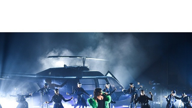 Также ярким номером стало выступление Рианны, которая прилетела на сцену на вертолете и исполнила новую композицию Bitch Better Have My Money.