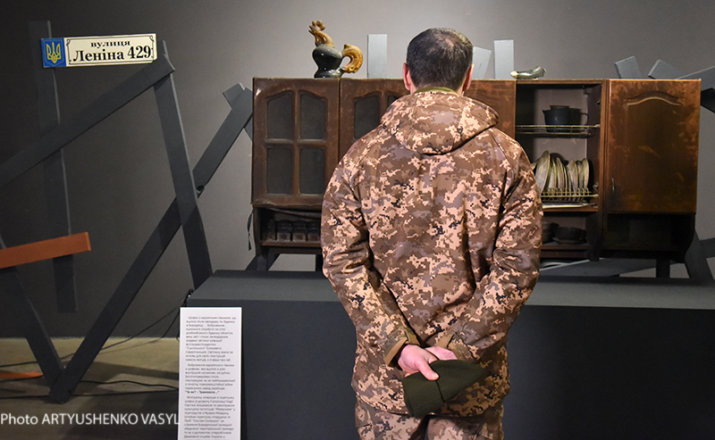Особенно узнаваемым экспонатом является кухонный шкафчик с петухом, уцелевший после авиаудара по дому в Бородянке.