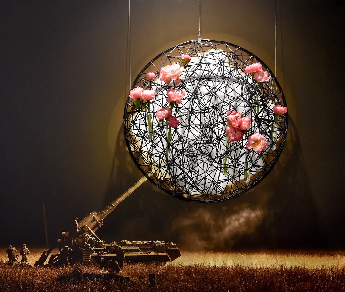 Фотовыставка объединяет десятки кадров, сделанных на передовой. Они не только документируют боевые будни бригады, но и передают эмоциональные контрасты войны: от щемящей красоты пионов, ставших символом 43 ОАБр, до взрывов 46-тонных артиллерийских орудий, которые одновременно несут и разрушения, и тишину. Именно эти пушки — 203-мм САУ «Пион» — одними из первых стали на защиту столицы в феврале 2022 года.