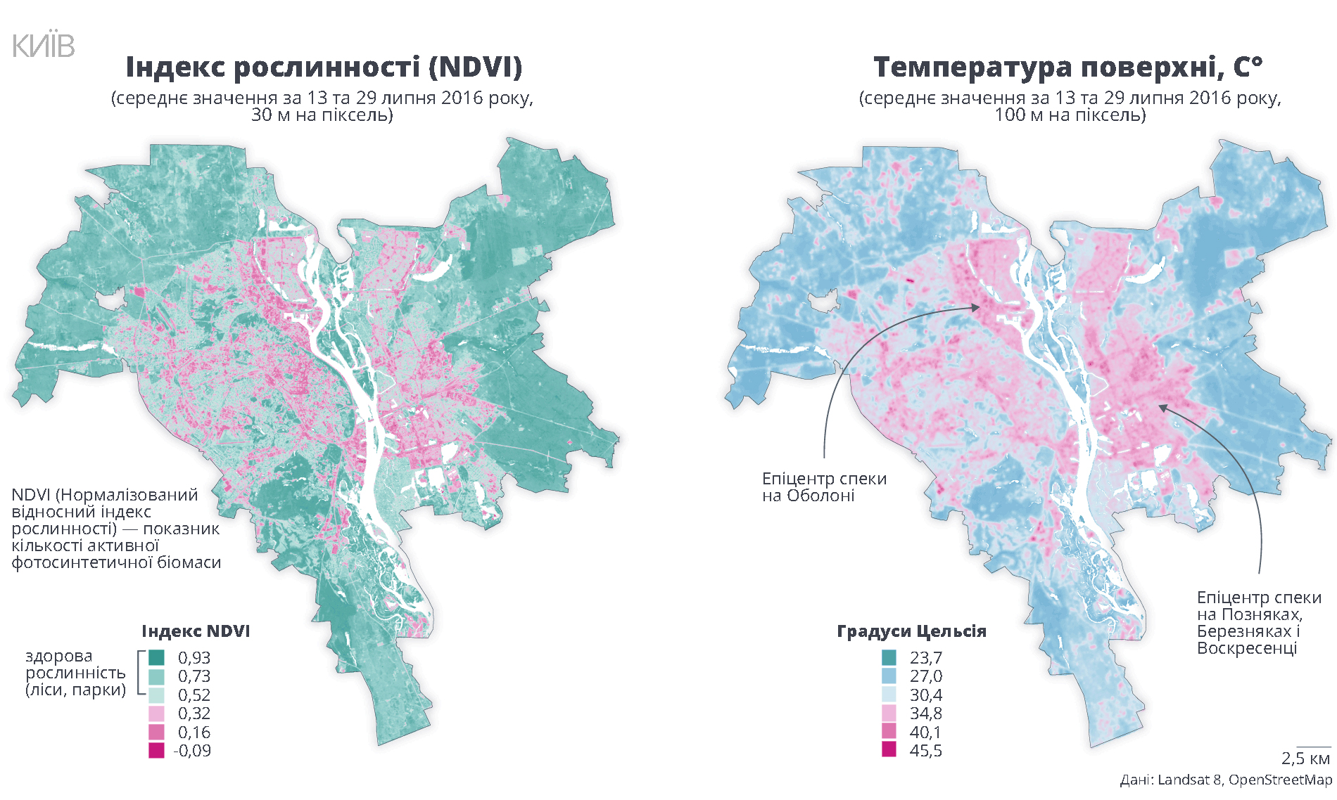 А что же в Киеве? Ситуация не наилучшая. Больше всего страдает Левобережье. Хаотичная застройка последних 20 лет превратила ранее цветущую пойму Днепра — Дарницкий район Киева — в бетонную пустыню, страдающую от жары и многочисленных инфраструктурных проблем.