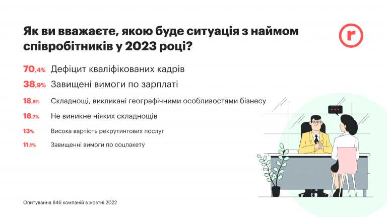 70% работодателей в Украине отмечают дефицит квалифицированных кадров, а почти 60% работодателей планируют удерживать имеющихся работников повышением зарплат в 2023 году. О таком намерении работодатели заявили в ходе опроса, устроенного одним из кадровых порталов Украины.