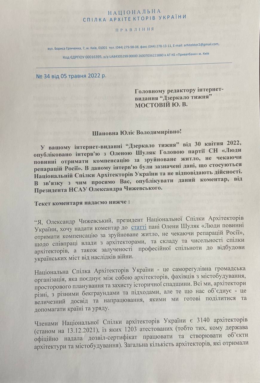 В НСАУ заявляют, что Национальный союз архитекторов и Архитектурная палата НСАУ представляет интересы и представляет мнение всего архитектурного сообщества Украины.