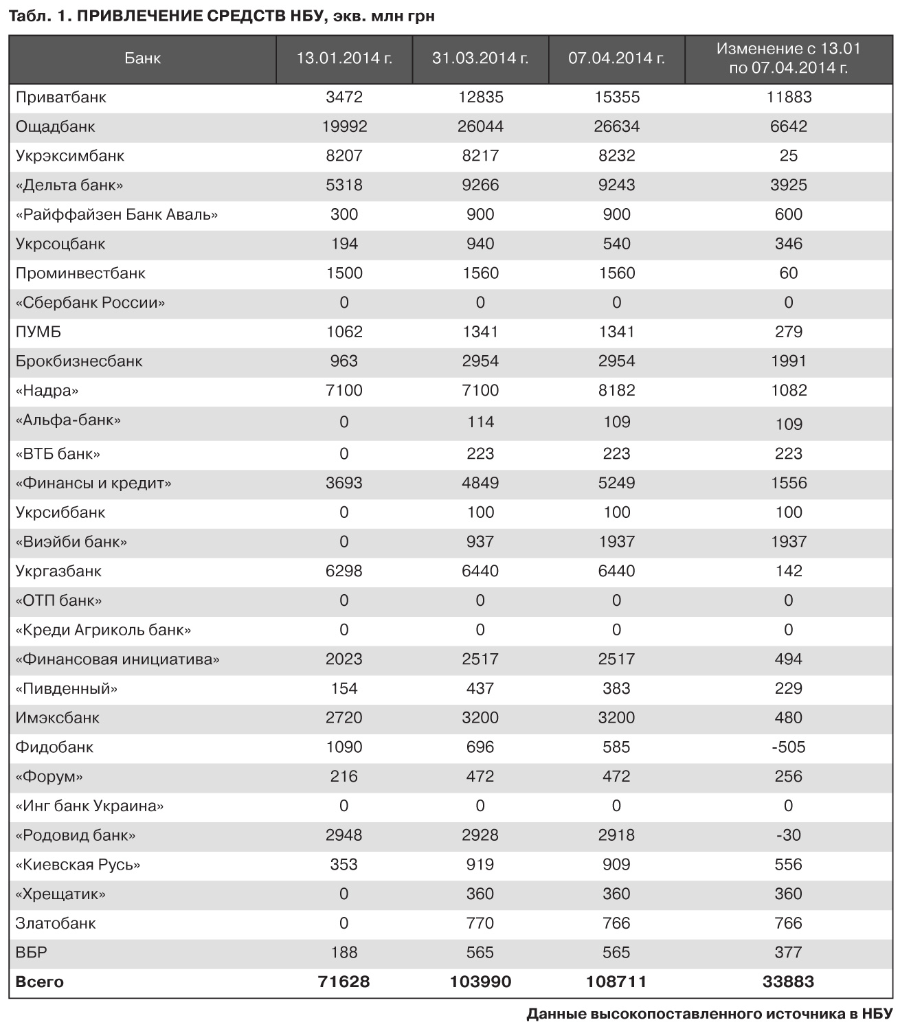 Интересным фактом является выделение 1 млрд грн банку "Надра" Дмитрия Фирташа. До недавних пор его менеджеры сталкивались с жестким отказом в Нацбанке. Однако отток средств стал настолько угрожающим, что в НБУ были вынуждены выделить "Надре" финансирование, хотя адекватных залогов у банка уже нет. Кроме того, банк "Надра" еще не приступал к возврату 7,1 млрд грн стабилизационного кредита, возврат которого Нацбанку гарантировал Фирташ личной гарантией.