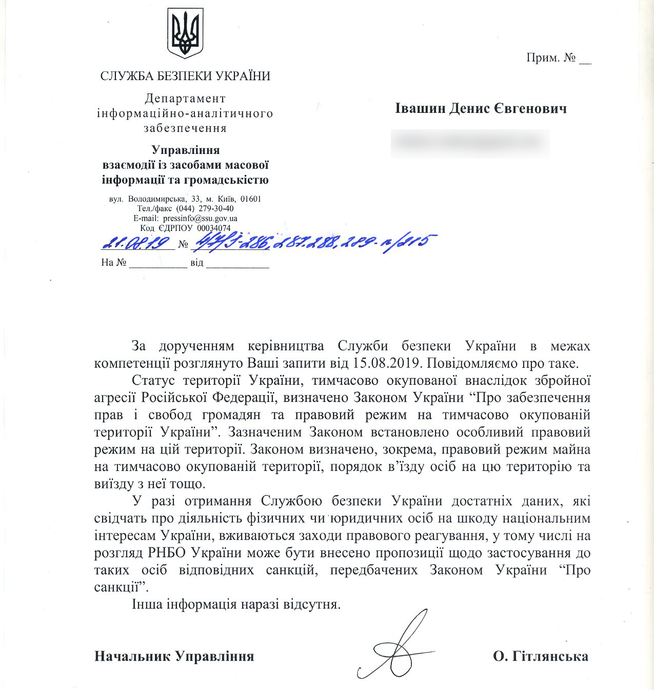 Данные Службы безопасности Украины, полученные волонтерами сообщества в ответ на запрос, свидетельствуют о том, что сведений о легальном пребывании Андросюка, Куденко и Филона на территории оккупированного Крыма пока что нет.