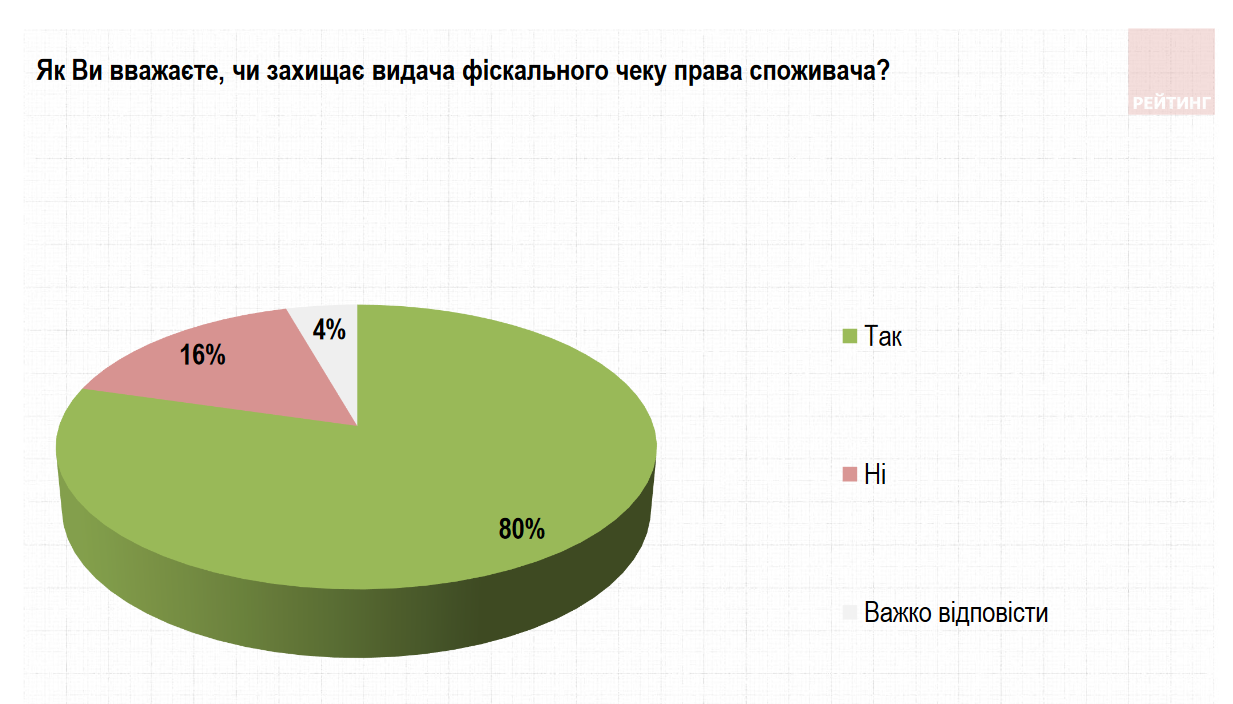 Большинство украинских потребителей (80%), независимо от возраста, платежеспособности и места жительства, хотят получать на руки фискальный чек, считая этот документ гарантией защиты своих потребительских прав.