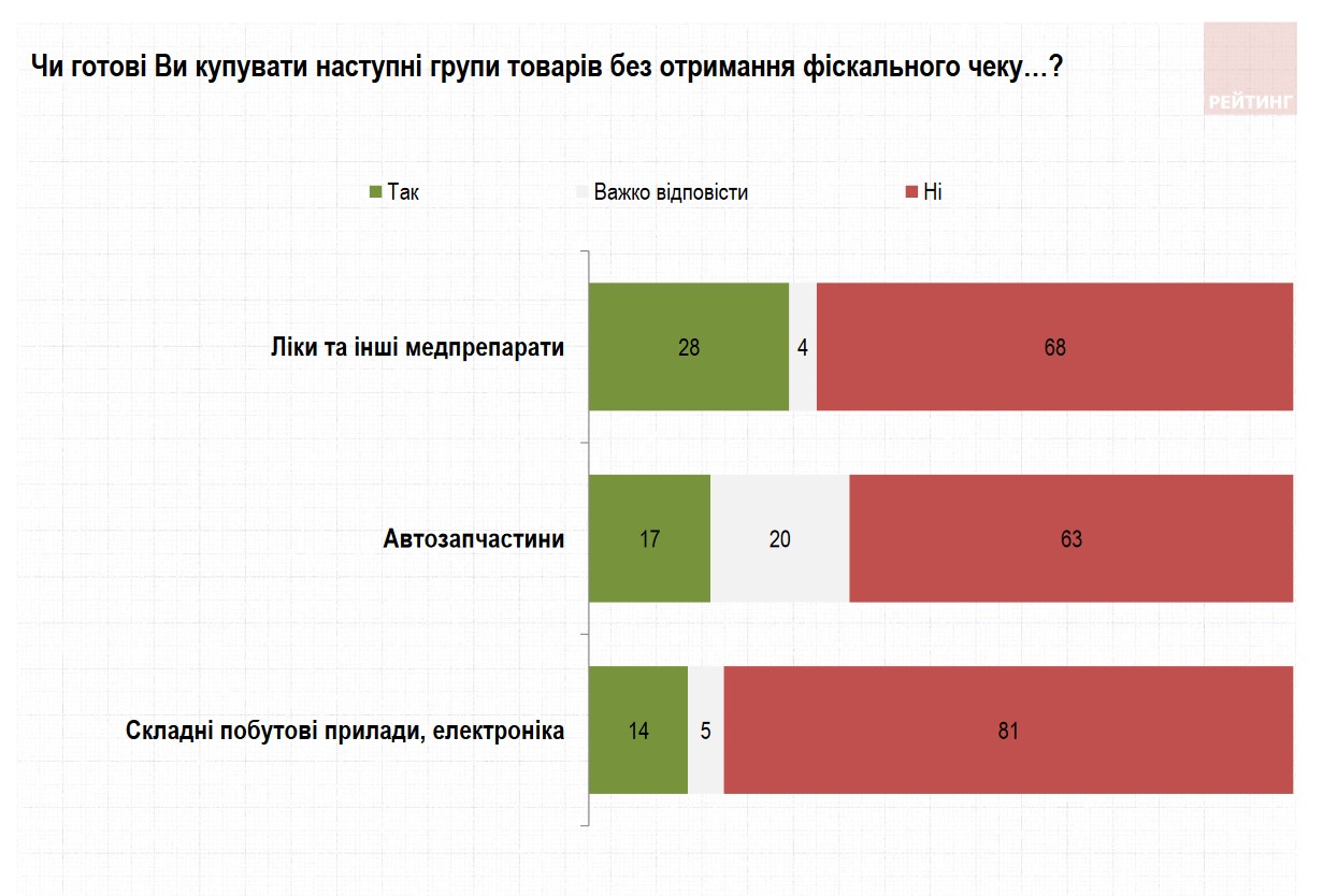 По данным опроса, проведенного группой «Рейтинг», подавляющее большинство потребителей (60%) вообще не готовы покупать товары группы риска без получения фискального чека, при этом 80% из них – именно сложные бытовые приборы и электронику.