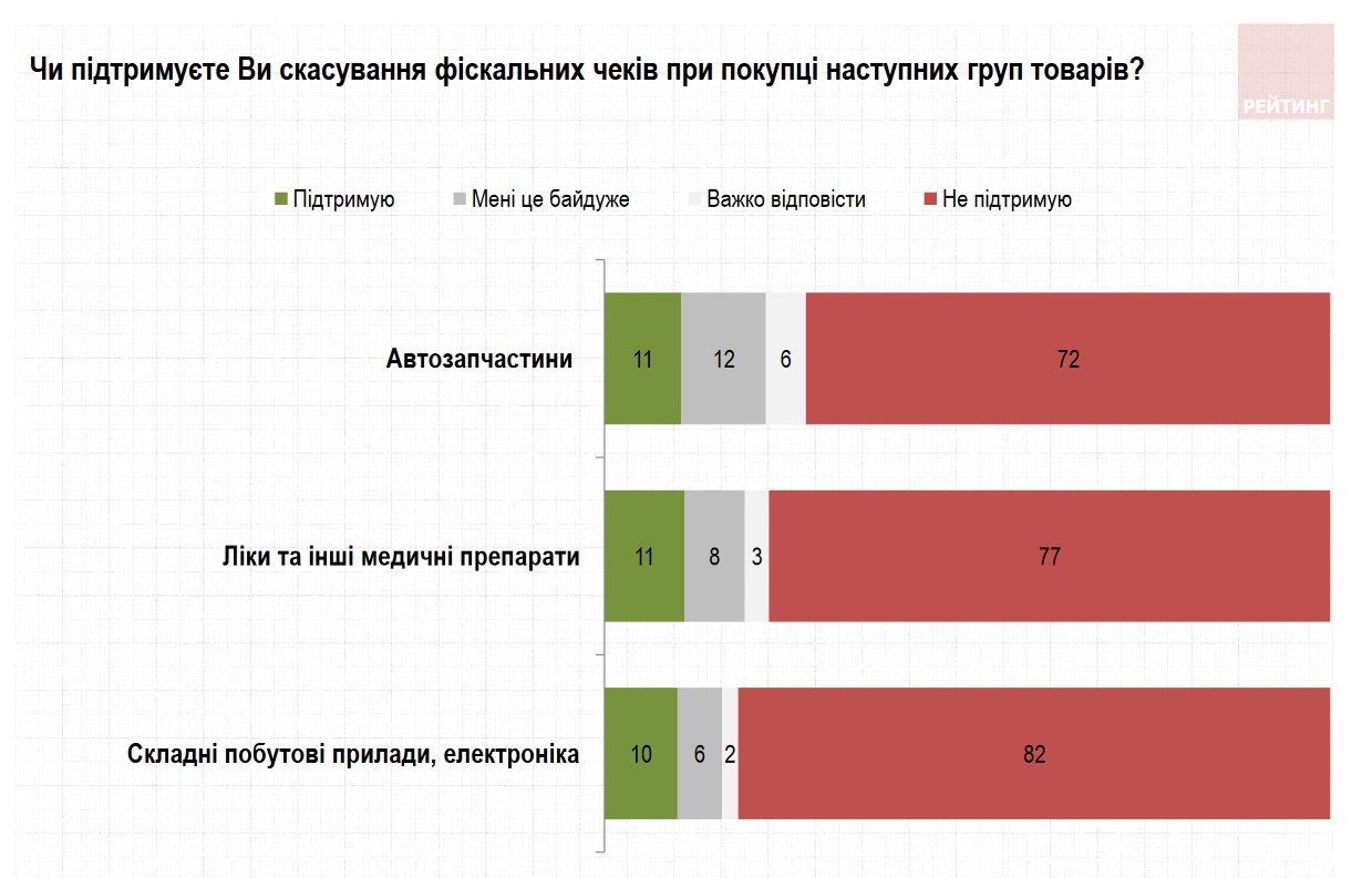 Также более 70% опрошенных не поддерживают инициативу по отмене фискальных чеков при приобретении рисковых видов товаров.