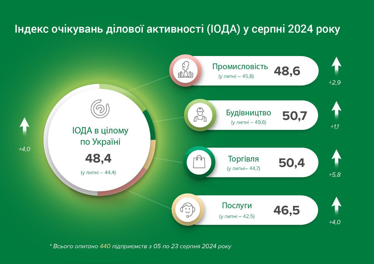 Индекс ожиданий деловой активности, который ежемесячно считает Нацбанк, вырос до 48.8 в августе с 44.4 в июле. Однако он пока ниже максимальной отметки текущего года - 52.3, на которой был в апреле. Об этом сообщает пресс-служба Нацбанка.