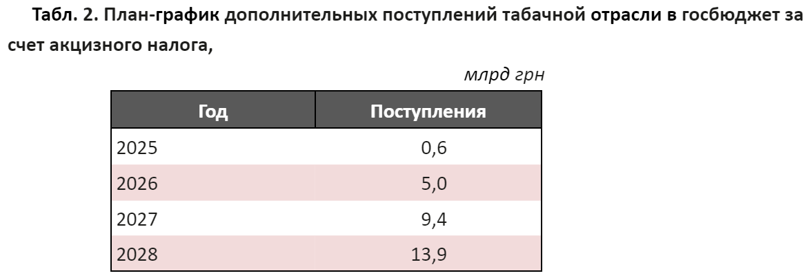 Табачные изделия: 0,6 млрд грн в 2025 году