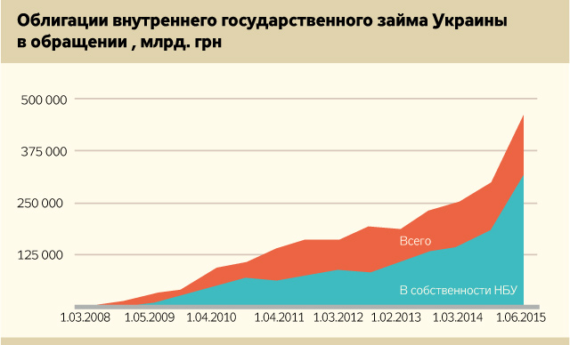 Потенциальная эмиссия гривни обуславливается тем, что для получения реальных денег необходимо продать все ОВГЗ, но, кроме НБУ, покупателей на такой объем госбумаг в Украине нет. Покупка НБУ выпускаемых Минфином облигаций внутреннего государственного займа является, по сути, увеличением гривневой массы в обороте.