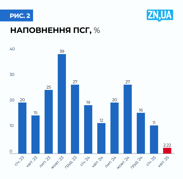 Автор напомнил, что в 2022 году часть импорта оплатили доноры за счет льготного кредита в 350 млн долл., а также кредитных линий Европейского банка реконструкции и развития. Кроме того, активно отбирались переходные запасы газа из ПХГ. Если до 2022 года обычно Украина выходила из отопительного сезона с остатками газа в объеме 3,5–4,5 млрд кубометров (без учета 4,6 млрд кубометров активного газа, выполняющего буферную функцию), то в 2025 году останется лишь 0,67 млрд кубометров.