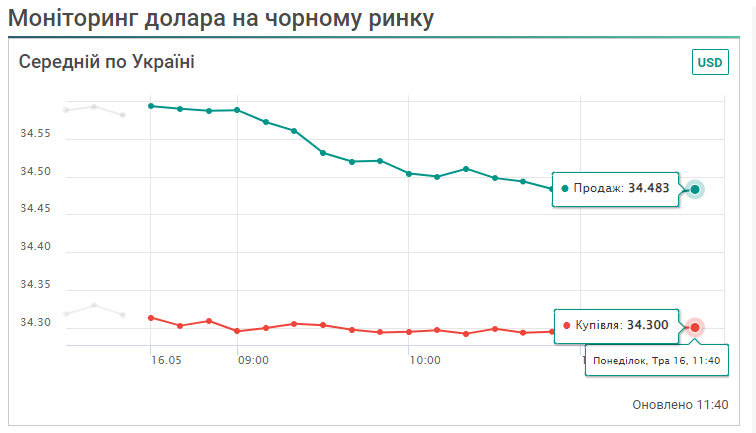 Курс доллара на черном рынке Украины по состоянию на 9 утра, 16 мая, подобрался к 35 гривням, после чего начал незначительное снижение. Об этом свидетельствуют данные специализированного сайта "Курс Украины".