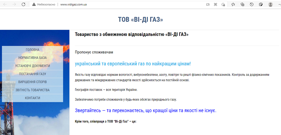 "Общество с ограниченной ответственностью "ВИ-ДИ ГАЗ" предлагает потребителям украинский и европейский газ по лучшим ценам. Обращайтесь и убедитесь, что лучшей цены и качества не существует", - говорится на сайте компании.