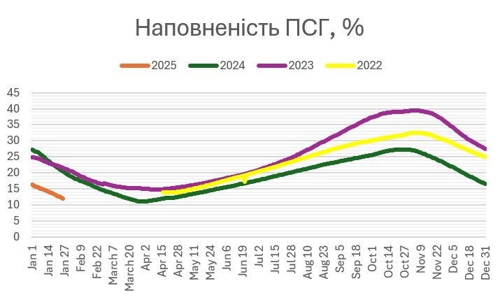 По словам Макогона, при наполненности хранилищ в 10% проектная возможность отбора газа снизится до 60 млн кубометров в сутки. В то же время, среднее потребление в стране сейчас составляет около 110 млн кубометров в сутки. Из них 52 млн кубометров обеспечивает собственную добычу, а остальные 58 млн кубометров – подземные хранилища и импорт.