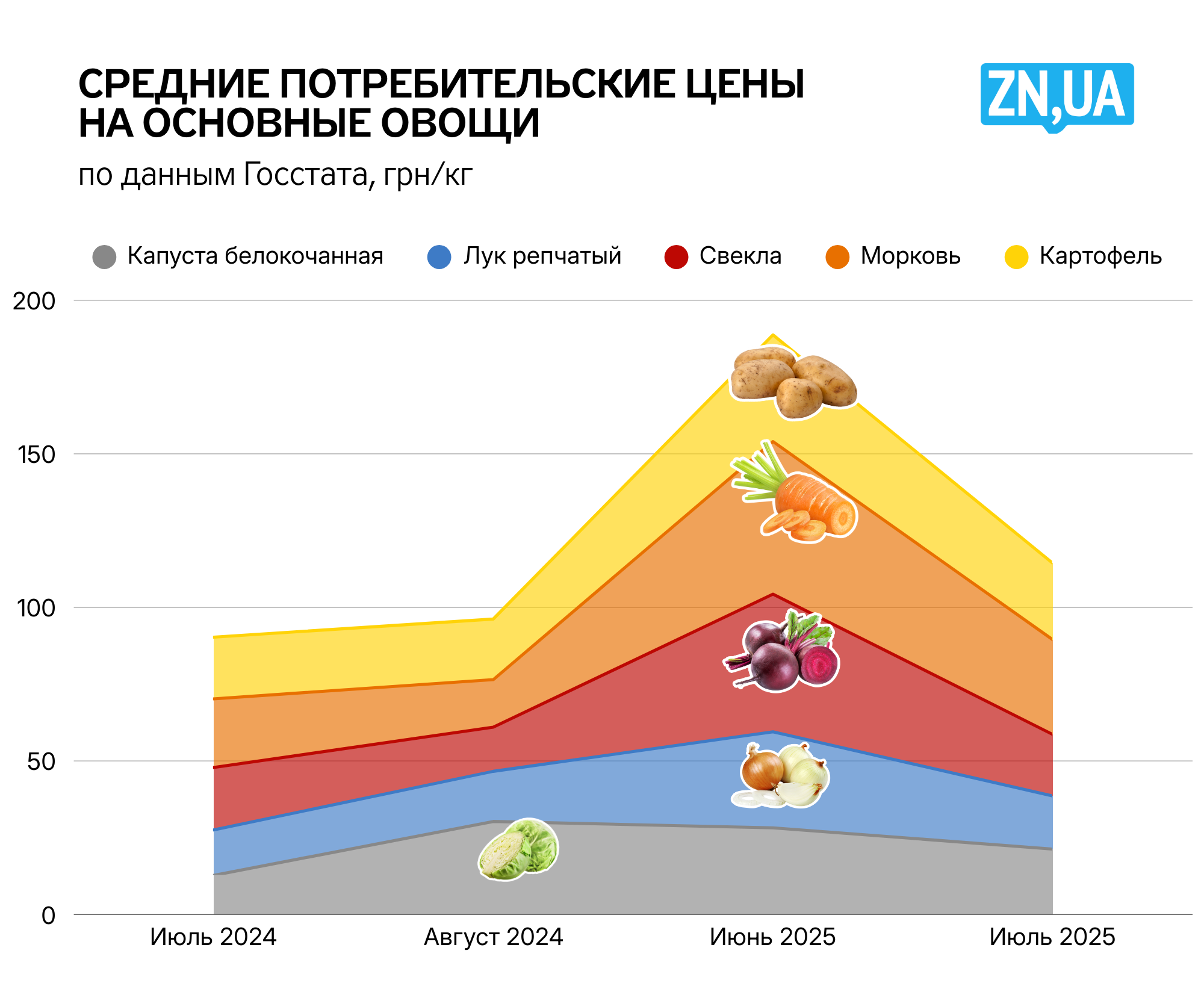 Капуста — 15–17 грн/кг, свекла и лук — от 9 грн/кг, морковь — 12 грн/кг и выше. Овощи/фрукты более дешевые в августе 2025-го по сравнению с июнем. Если сравнивать январь—июль 2025 года с январем—июлем 2024-го, то цены, к сожалению, выше на треть.