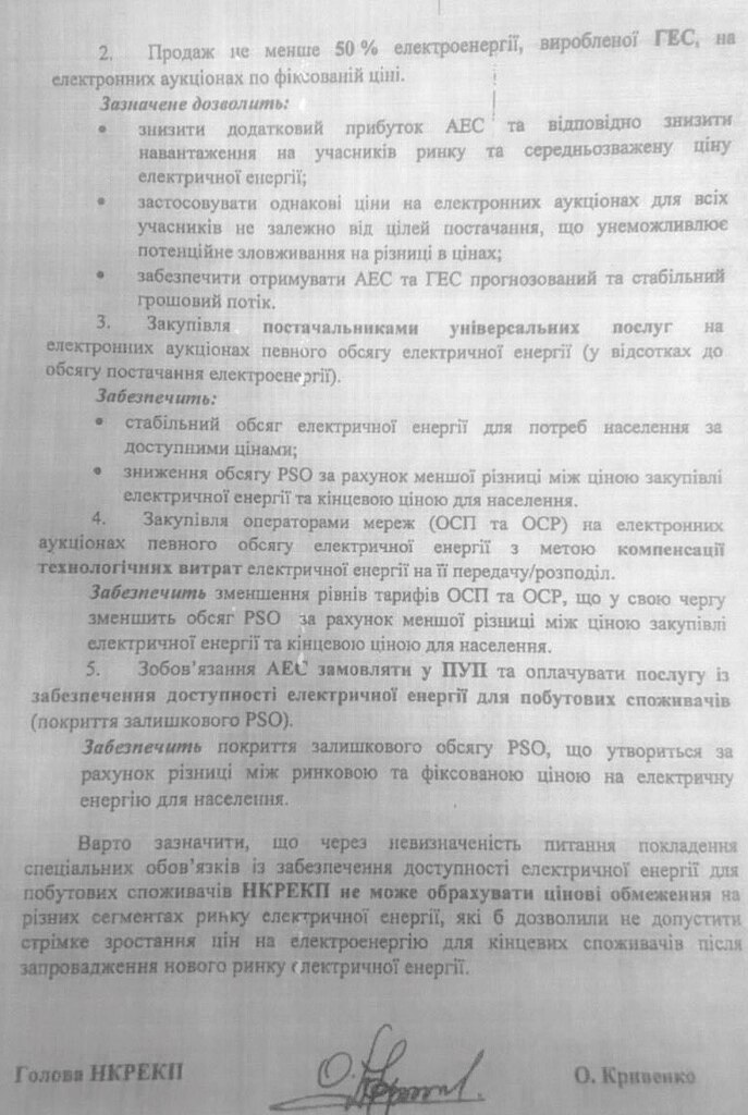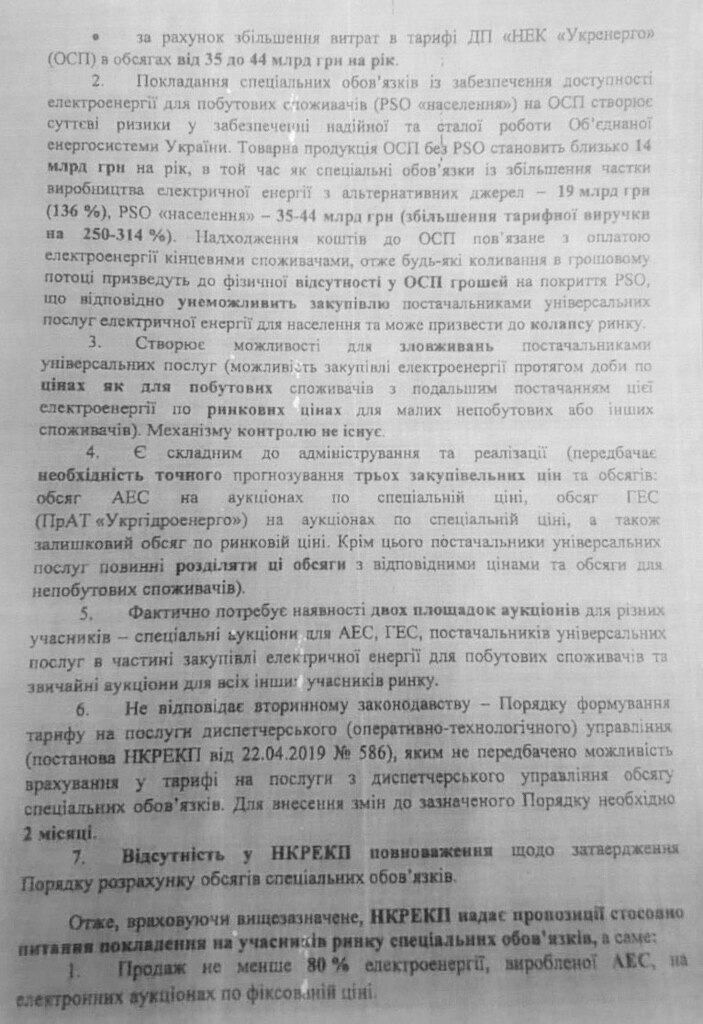 В письме регулятора указывается, что текущая модель возложения специальных обязанностей может привести к дополнительной финансовой нагрузке на рынок, соответственно, ее необходимо усовершенствовать. "НКРЭКУ предоставляет предложения относительно возложения на участников рынка специальных обязанностей, а именно: