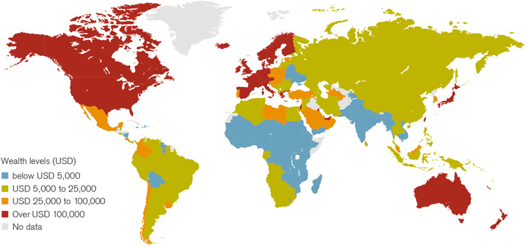А самыми богатыми оказались швейцарцы, каждый из которых владеет в среднем $ 513 тыс.. За Швейцарией следуют Австралия ($ 403 тыс.), Норвегия ($ 380 тыс.) и Люксембург ($ 315 тыс.). В десятку самых богатых также вошли жители США, Швеции, Франции, Сингапура, Бельгии и Дании.