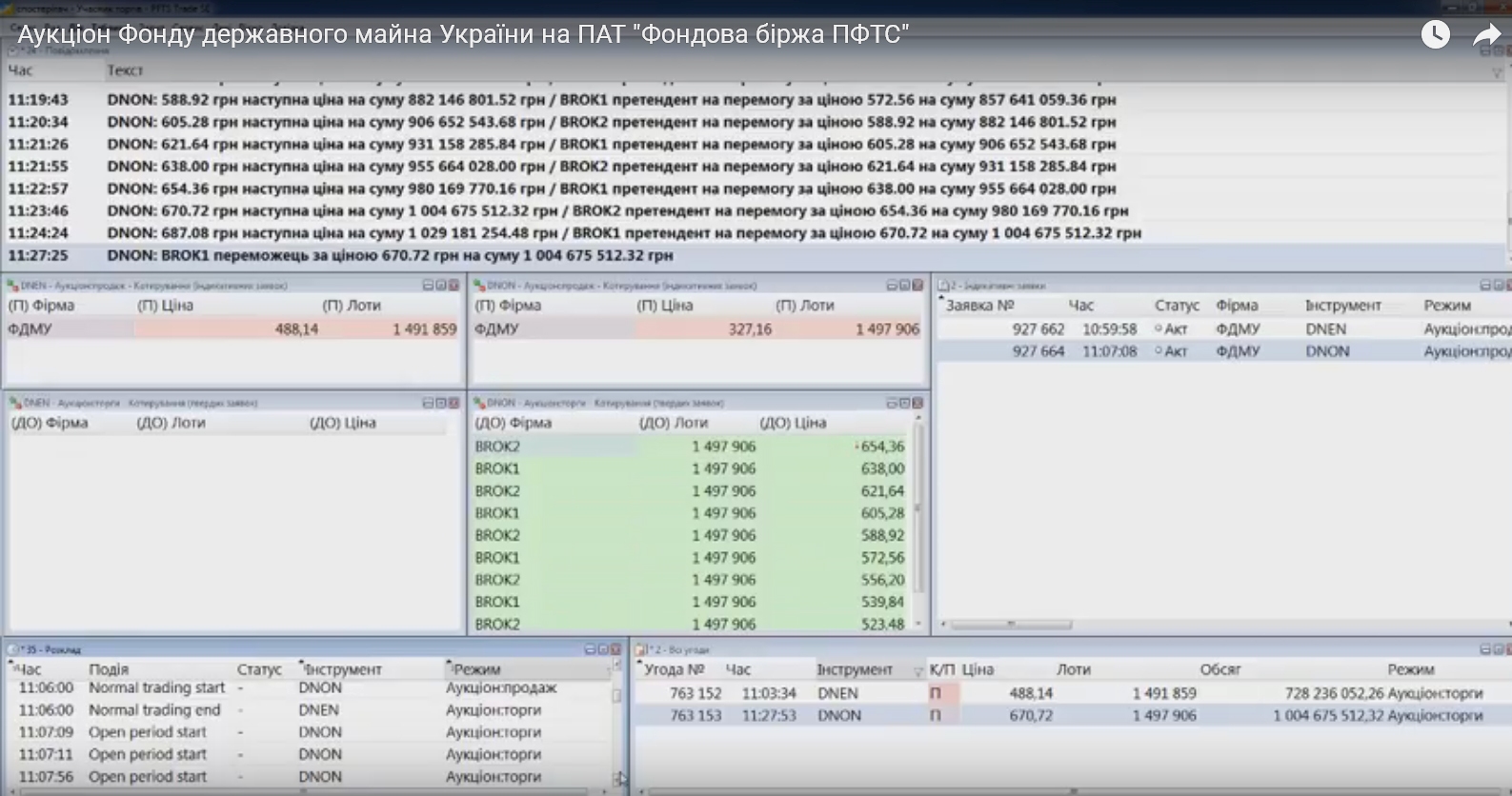 Торги проходили на фондовой бирже ПФТС. Торги проходили на фондовой бирже ПФТС. 1 497 906 акций было продано по 670,72 грн за шт при стартовой цене 327,16 грн.